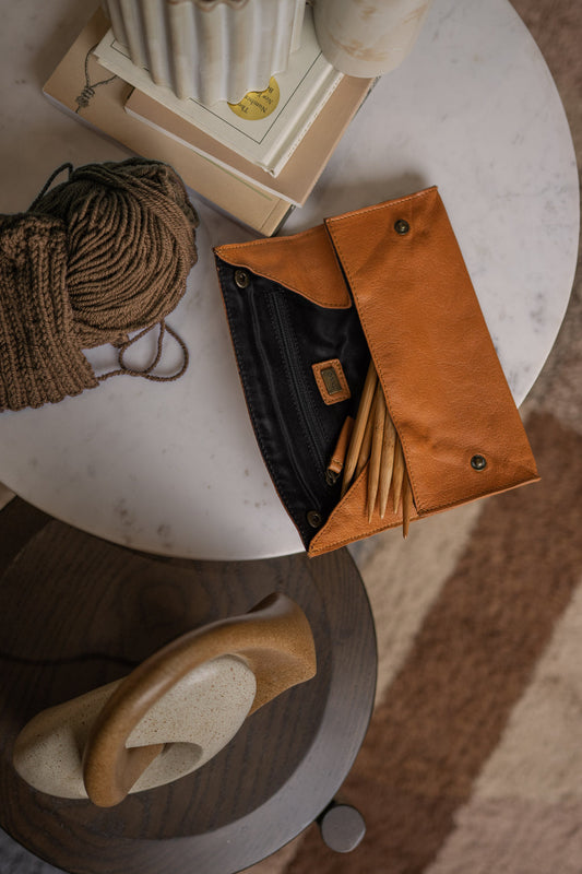 Handcrafted leather accessories that are a perfect fit for a knitting enthusiast