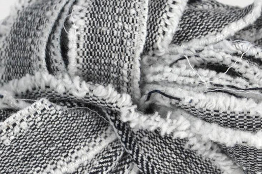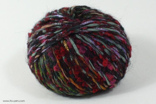 Introducing Accessory Yarn Masaki, the innovative art yarn collection by the Japanese fashion label M&KYOKO. This unique collection surprises with its fusion of modern high-tech fibers like holographic nylon knit ribbon with high-quality, classic materials such as silk, mohair, and alpaca. Traditional Japanese craftsmanship blends seamlessly into contemporary design.